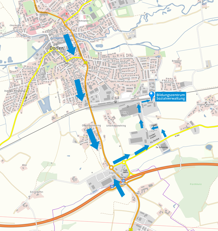 Fahren Sie jeweils in Richtung Altstadt. Die Straße führt direkt zum Bildungszentrum Sozialverwaltung.